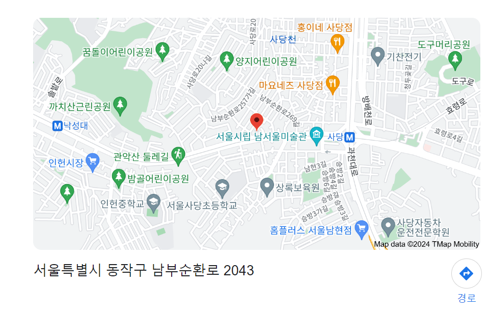 오시는 길 : 서울특별시 동작구 남부순환로 2043 3층 office (사당역 8번출구)